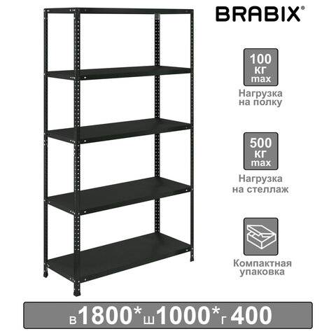 • Стеллаж металлический  "ГРАФИТ MS KD-180/40-5", лофт, 1800х1000х400 мм, 5 полок, 291269, S240BR144593