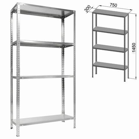 • Стеллаж металлический ПРАКТИК "ES" облегченный (1450х750х300 мм), 4 полки, оцинкованная сталь, S24099033458
