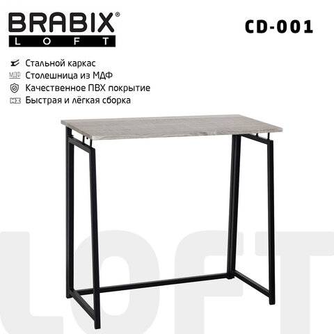 • Стол на металлокаркасе BRABIX LOFT CD-001, 800х440х740 мм, складной, цвет дуб антик, 641210